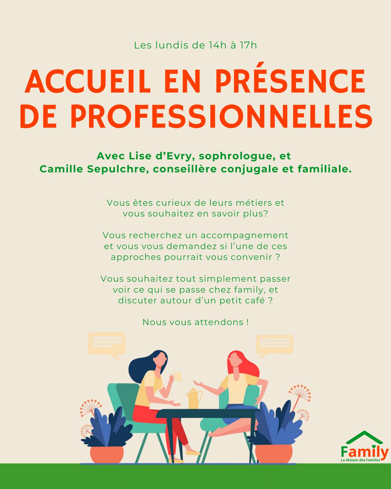 Une sophrologue et une conseillère conjugale et familiale vous accueillent gratuitement et sans RV chez Family Belgium !